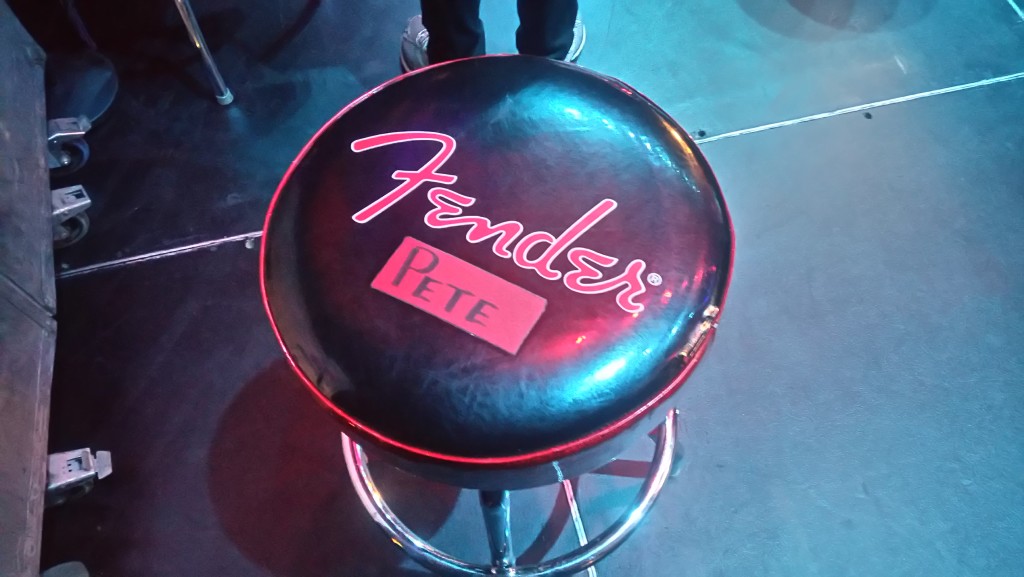 We saw something Pete did that was only mentioned about 30 minutes later; a windmill-strum had partly ripped off one of his right-hand fingernails – a painful, but sometimes common injury he deals with. “I was showing off” Pete explained. He had to clip off the remaining bit (ouch) and motioned for the often-used bottle of spray that deadens the pain. The playing showed no sign of holding back, quite the opposite. If you can find video of this show online, there are some amazing guitar bits happening here and there – he’s been practicing, for sure.