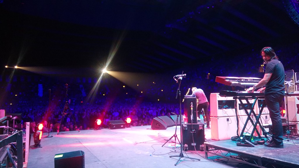 As hinted in the previous blog, the new additions were additional songs from Quadrophenia: ‘I’m One’ and ‘The Rock’. It’s a great set of tunes, and most WHO fans are big Quad fans as well, whether it be from the music alone, the film or the whole mod culture (who are always in attendance for our shows). The set change also gives Rog a vocal rest for two songs, before the challenging Tommy medley. Most audible during the huge tom-tom fills in ‘The Rock’, Zak’s new drumset really helps the show. It’s wooden shells, rather than the clear plastic he’s had on recent tours. (Yes, we’ll have to change the pre-show slides that mention the old kit! Speaking of the slides, it’s certainly become a popular thing while one sits and waits for the big show to begin; The WHO team tries to make the whole evening a great affair. ) Having ‘Sparks’ and ‘The Rock’ in the set really do allow the music to shine, and our band of players can really pull off those many piano/guitar/synth layers of the Quadrophenia record live.