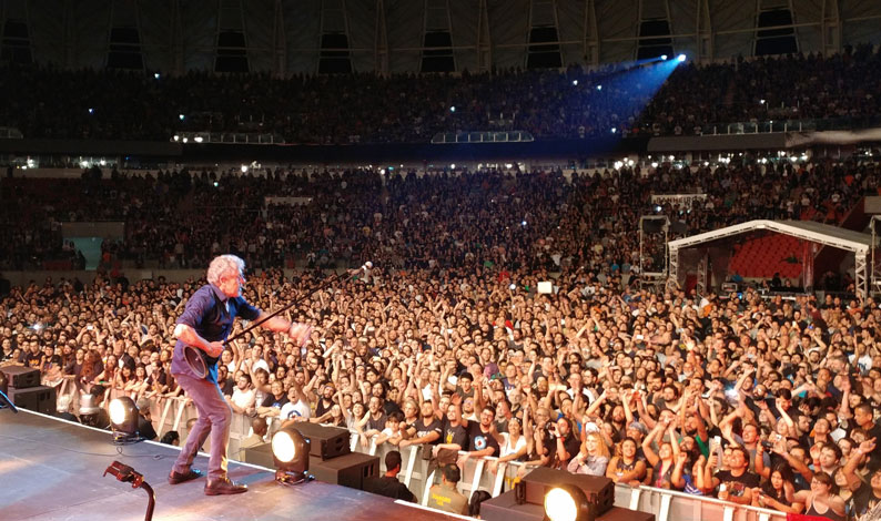 Another thing that may contribute: festival seating. Normally The Who don’t allow seats without assigned places – You’re used to this if you see us in the UK or USA. For safety reasons, it makes total sense. But when these multi-band festivals happen, you have to let people come and go near the front. With good control – it can work. What happens is, the wealthy and privileged no longer control the front rows. Those who care the most are down front, and they really DO appreciate being so close. For the band, this makes the greatest energy, the loudest singers, the freshest faces each night.