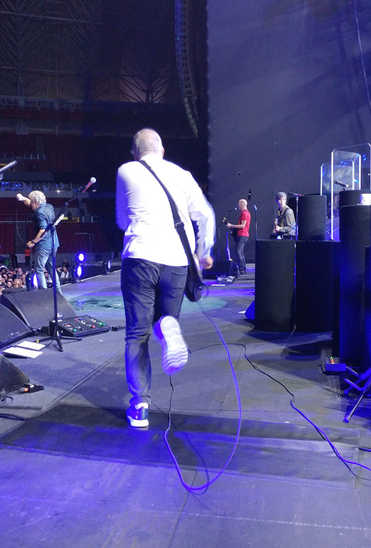 The crowd was loud – not quite as loud as Mexico City last year (well, they were indoors, which helps), but as intense and physically more active, waving their arms and jumping and singing. They even sang the opening chords of ‘Baba’, something that only happens in Latin countries, sometimes. Certainly, the band played better than in Mexico City, and some in the crew felt it was the best show in the last 10 years, maybe more. (There are only a few show this strong that I’ve seen since joining in 2002: We remember fondly a private show at The Orpheum Theater in Los Angeles that might be one of the greatest Who shows in any decade. Palacio de Deportes in Madrid 2006 was exceptional too. And tonight was about that good, certainly in the top five of modern-era Who evenings.)