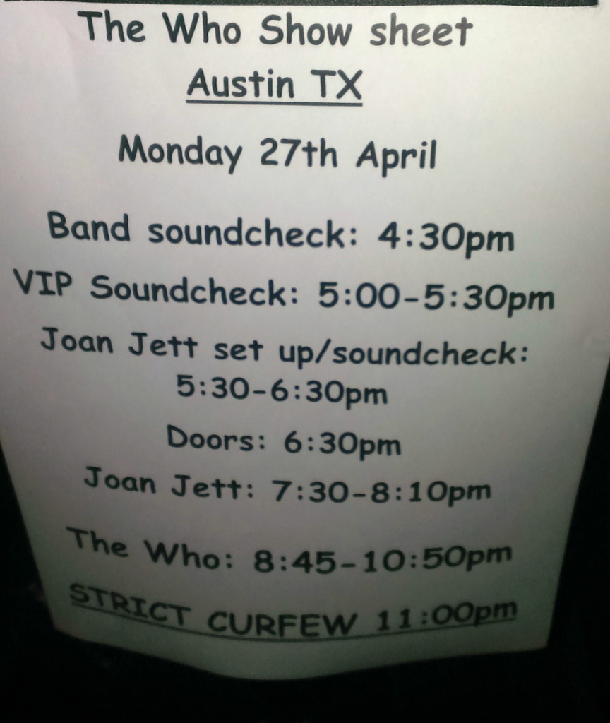 In the afternoon soundcheck, Pete had joked with the lucky VIPs who get to watch the the band rehearse very candidly, “We are here today to ruin Austin’s reputation as the City of Great Music. After tonight’s concert, nobody will ever come to Austin to hear a band again!” It seems that while The Who (as we know it) may not be back, Austin music will go on, as it should.