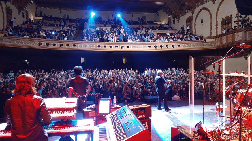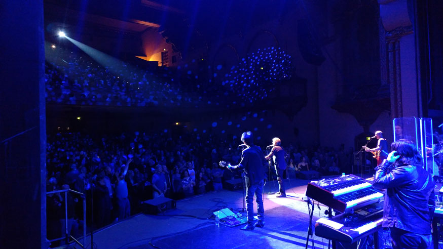 We set up as usual, back in the groove we’d established many years ago. And today in soundcheck, another common thing happened: Roger finds the band’s volume is too loud. This coming from the man who fronted “the world’s loudest group.” True – but things are different. This stage is built for acoustic music, it actually amplifies sound in a way, resonating and reflecting. So the same amps (which we had already turned down as low as they might go) are too loud. It’s a nearly constant battle – and you’ve probably seen some examples: Plexiglass (Perspex in England) around the drum kits. Smaller amps than in the 70s. In-ear-monitors rather than speaker wedges all over stage. Still – as the Who once said “It’s not enough… Whatever you do, it’s not enough.”