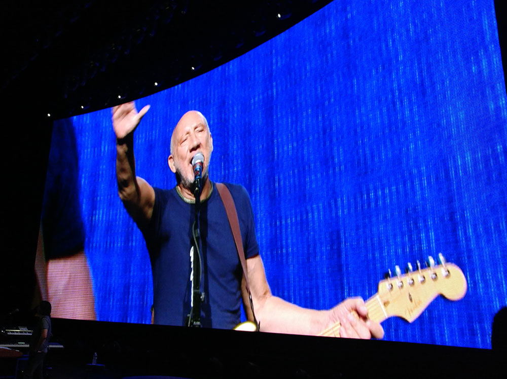 Following next was to be ‘Drowned’ – which has often been a great moment with Pete solo on acoustic guitar. After a good minute of sound issues, Pete started playing the song and then found guitar problems. Frustrating. Then, after a replacement guitar comes out, he can’t recall the first line. He asked the audience what it is (“There are men . . .”) and Roger answered back – he knew it! “So . . .” Pete said “YOU sing the first verse!” and Roger did. Then Pete pushed hard into the rhythm on his guitar and took the second verse. Roger again did one, the third, and Pete rounded out the last. This was an unrehearsed performance, people, and definitely a magic Who moment, grabbing a victory from the mouth of disaster. Great stuff. I suspect this “new version” will become a thing, and we’ll see some version of it again soon.