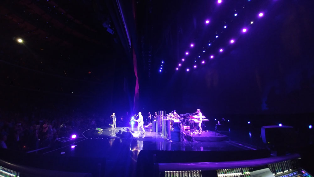 ‘Who Are You’ opens the show tonight, and Pete made some funny gestures aping the hand claps of the backing musicians. We’d thought he never noticed them on this song, fixated on his guitar work, as he does. Speaking of guitar, ALL his guitars now sport a new accessory; very visible but not quite obvious what it is. It’s something new he’s requested and making use of nightly! (I won’t give it away just yet; look for it in photos and videos online, maybe you can guess? Probably not! I’ve never seen anything like it before.)