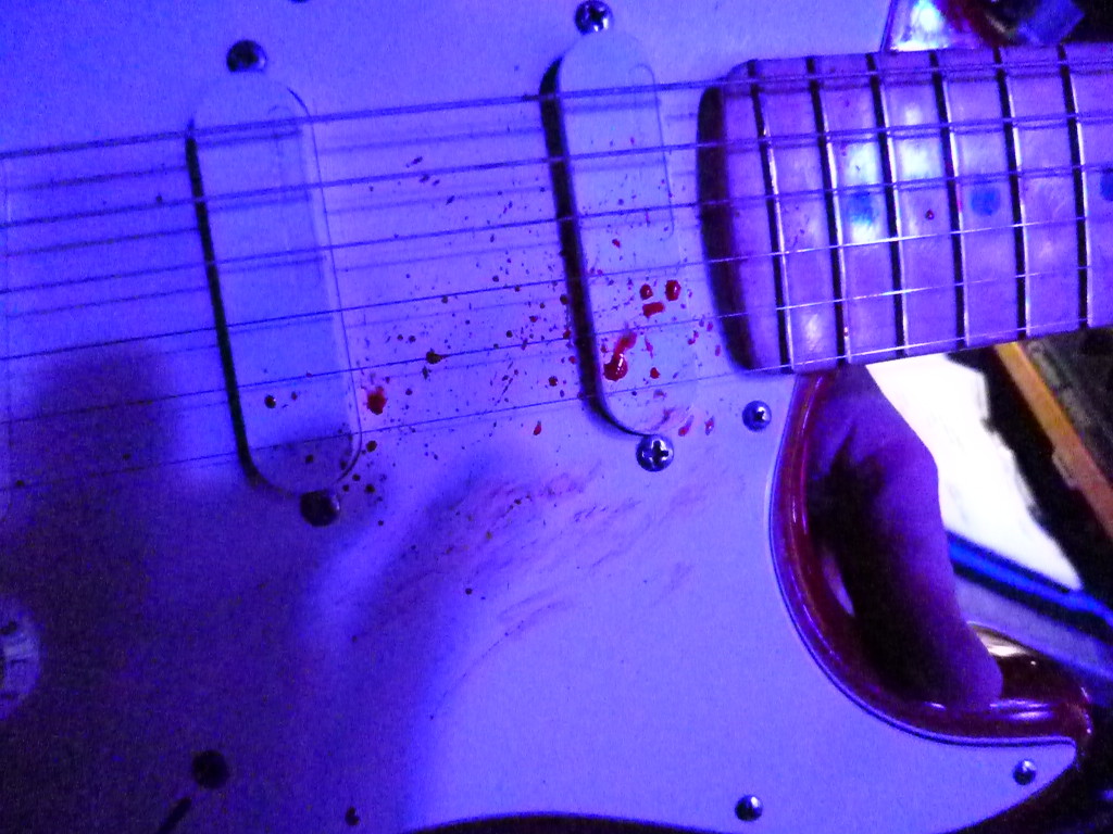 Unknown to most of the fans and crew, Pete had ripped off most of a fingernail while playing, and soon some of the guitars were coming back with blood drops across the front. Midway through the show, we sent a note to the video crew “Pete’s fingers are bleeding, get closeup?” and they read the note without seeing the “?” as a suggestion, so they solidly zoomed in for the better part of a minute or two, showing only the bloody guitar. The crowd LOVED it. Not many bands in their ‘teens or ‘twenties play this hard, or put up with that kind of pain. Pete did show the bottle of Solarcaine ™ which helps ease the pain. Our next tour sponsors, maybe?