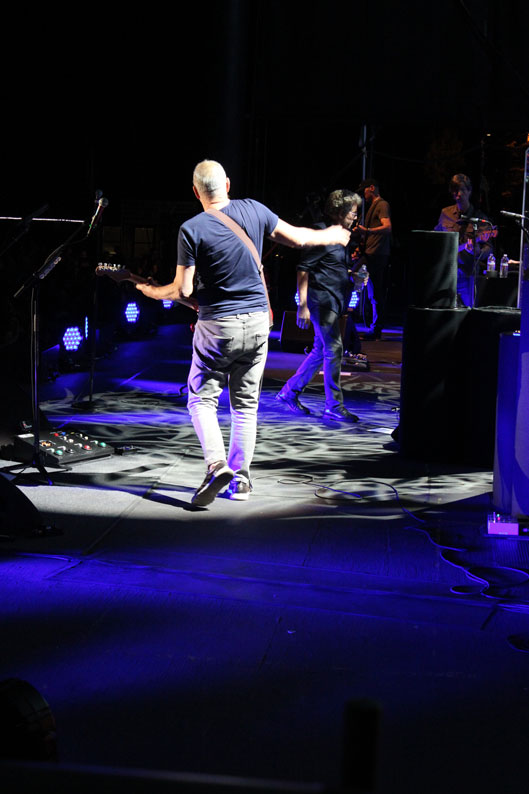 Pete was having some serious guitar issues onstage. “Sorry, the heat is f***ing up my guitars,” he said, “But you don’t care, do you!?” he teased the audience. I think he even changed guitars twice during a single song during the show. And he changed out his main amp – always a last resort – during a song. Hard to notice an improvement. He spent a lot of time adjusting the settings on his pedalboard. At one point, he apologized to the audience for so much fiddling about; he’d spent more time tweaking his pedals than I’ve ever seen before. He did say not to worry – he’d get it together by the end. I’m not sure if it ever quite got “there,” but he did relax and start playing loosely at the end.