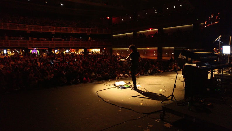 And the show begins to a fully-fledged weekend audience, the real peak nights in Las Vegas. They are wilder, looser – maybe a little more drunk – than the previous crowd earlier this week. Throughout the show they are yelling things (during songs or between) – but Roger can’t often hear them as his “ears” are in. “Ears” being his term for in-ear-monitors; just like your earbuds, he’s hearing the band on these wireless-signal earpieces. He takes quite a bit of time to explain his aren’t quite as closely-fitting as before, likely just a physical change that makes the old molded pieces a bit looser, changing the sound a bit.