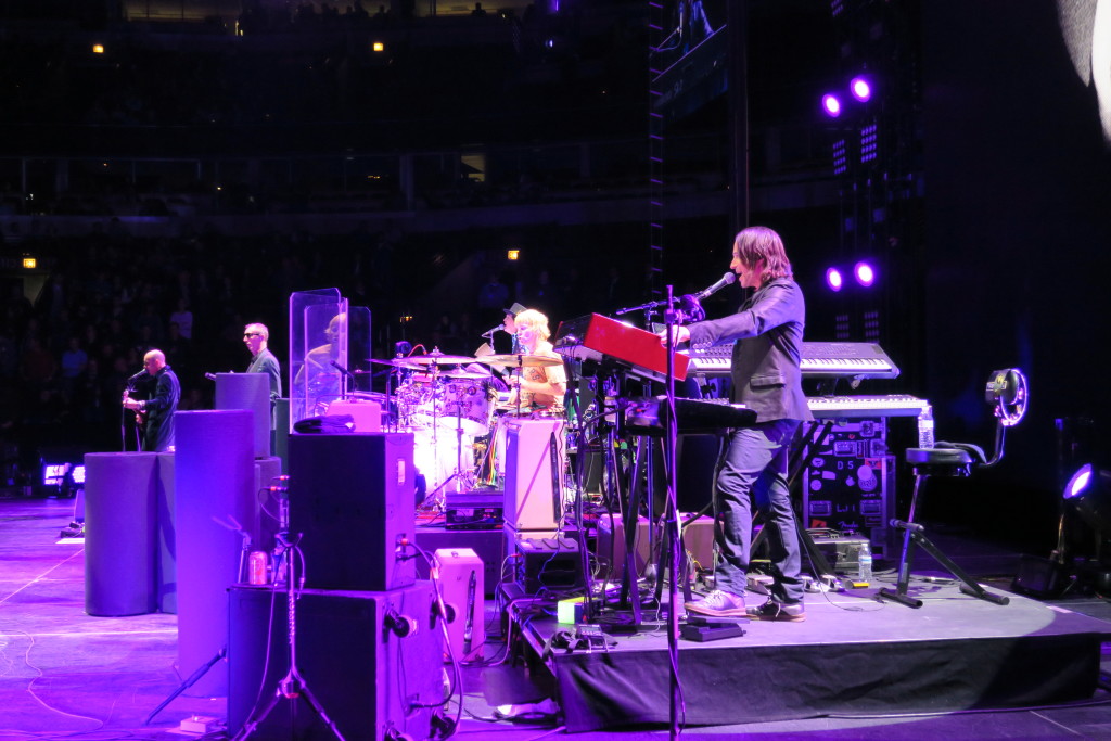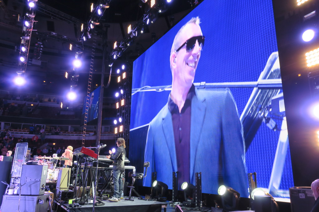 Before the show, various slides with Who history run; sometimes just photos, sometimes text stories and facts. Each town gets a small mini-history of The Who playing there, some gig photos from the past, or posters shown from local concerts. Sometimes, as today, there is a current event we must mention. The passing of George Martin, the famous producer of The Beatles and more, was significant to mention. We’d mentioned George’s film scores, other artists (America, Jeff Beck) and showed a nice photo of George with Pete Townshend and Des McAnuff; the team who put together the Tommy musical. George certain is the best-known record producer of all time, and his credits are immense and varied. He will be missed, but lived a long life, leaving us at 90 years. When the slides showed on the big screens, the audience broke into spontaneous applause.