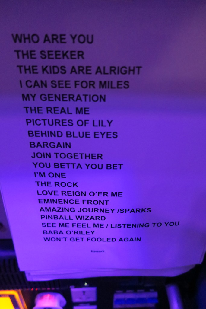 Pete mentioned his fond memories of the nearby Capitol Theater in Passaic. Of seeing local lad Bruce Springsteen right by the stage, absorbing it all. (Bruce came to sing with us last year, and told a long story about seeing The Who at Atlantic City where it changed his life – the video is on YouTube of that speech.) Pete gave thanks to those who waited so long for this show to happen, despite the delays, and was glad to be celebrating their 51-year Anniversary – truly more correct than the continuing The Who Hits 50! tour still rolling since last year. “It’s The Who hits 51 and three-quarters or something!…”