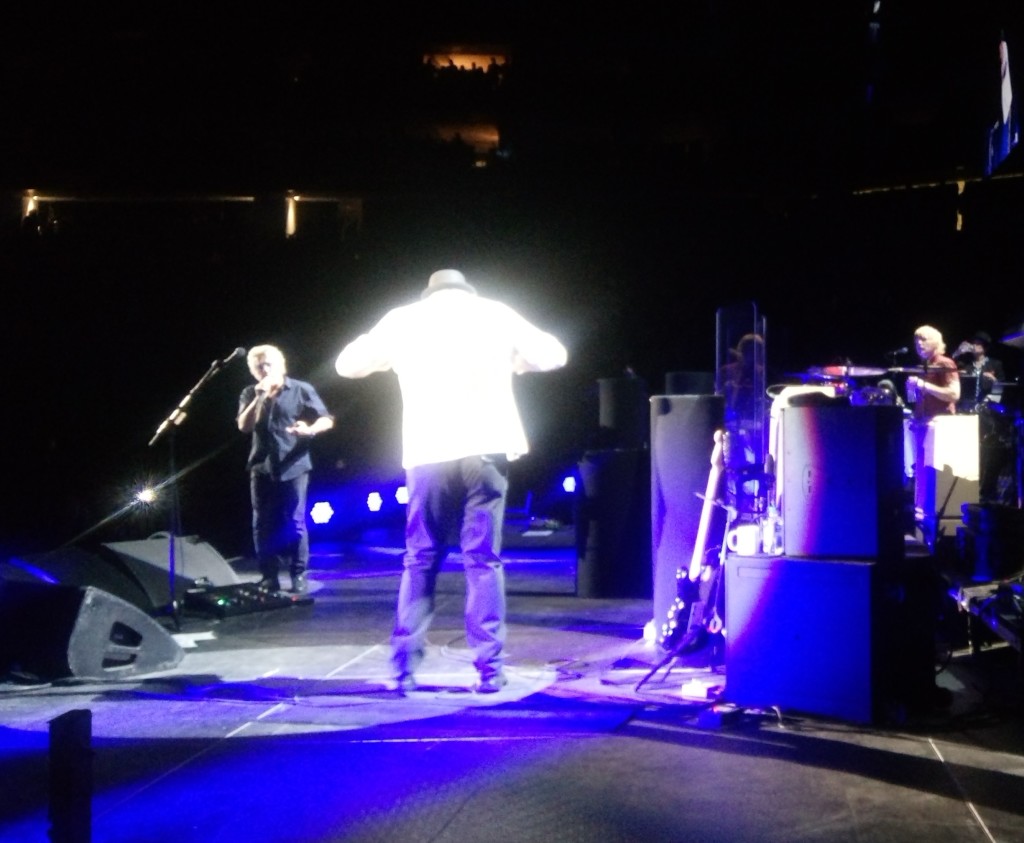 Roger and Pete discussed what ‘Pictures of Lily’ was about, and Pete suggested it was something (unprintable) to do with Rihanna. He also noted having a feeling of becoming slightly ill during the show, and he’d asked for something to take. He held up the white medicine brought out, and said “One little pill!? They don’t know who I am!!!” to big laughs. He cautioned any children present not to deal with drugs, “or you may not live to be 70!” And these 70-year-olds seem to have quite a strong life force going still. It’s great that Rog and Pete have no trouble mentioning their age, even making a joke of it nightly. I can’t think of another similar act who does (McCartney, The Stones, Clapton, Beck?) Unlike others who die their hair, wear wigs or leather pants (any tricks to seem younger), these two are very comfortable being who they are. It’s cooler to be real and still have power and sensitivity, a bit of healthy ego and a self-deprecating humour that balances it. This makes this a VERY good time to be a Who fan; it’s not at all uncomfortable to be here, thinking of the past AND enjoying the now as much as possible.