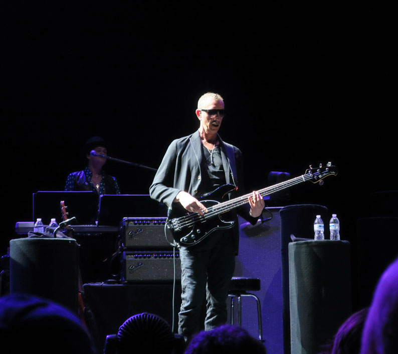 Our man on bass, Pino Palladino, had debuted a new instrument tonight, a beautiful black-and-chrome Music Man bass. It’s a prototype specially made for him, and arrived today to be put into immediate use! It does sound great.