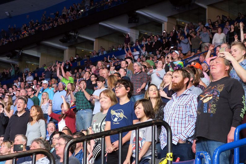 This is a great city to visit. While the Who have not played in St. Louis much recently, there have been nearby shows that take us to stay here. It’s full of good food (BBQ especially) and cool stores here and there. This show has taken some time to reach; it was on our first leg, when Roger’s voice shut down unexpectedly and a week’s worth of Midwest shows were postponed until the Fall. Then, the entire Fall tour was postponed, until now. So many of these ticket holders not only bought back in 2014 (!) they waited until 2016 for the show. It finally happened.