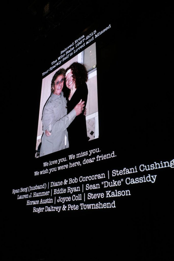 On the serious and sad side, one longtime fan and friend of The Who was missed here; Erica Berg “beloved Who babe, 1967-2015” had passed away since our last time here. Several slides showing her life and Who-related photos were shown before the show. We’re hoping her family and friends (including all those on the tour) were able to see the warm tribute to this talented dancer. A life well-lived.