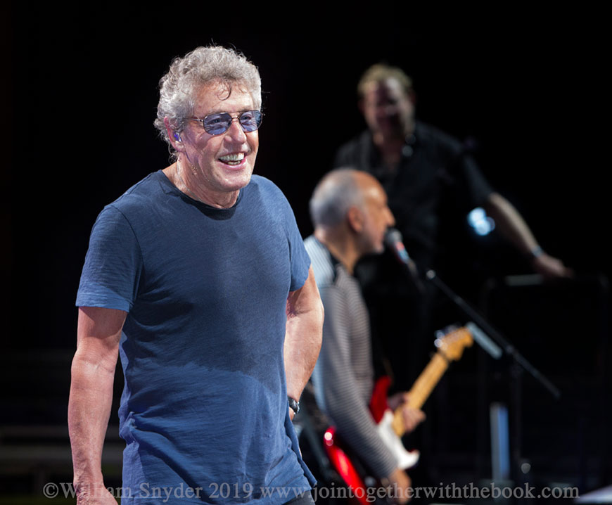 ‘You Better You Bet’ was back in the set, and this crowd went mad! No one expected it, but it was an anthem to them, and turned into one of those highlights for everyone. I suspect it might return again, with a welcome like that! ‘Won’t Get Fooled Again’ – the acoustic version, or as Roger called it, the “where the f*** are we version!” It did meander a bit here and there, but it seemed no one minded. Zak has bee on fire for these shows, playing as well as he ever has. Maybe being energized by running his own record label, or working in Jamaica and South America during his time off? No idea, but something’s working and he’s pulling hard to make every show great. It shows. He looks extra cool tonight in a black satin jacket, contrasting with his bright yellow hair – at least until it gets too hot to wear the extra layer.