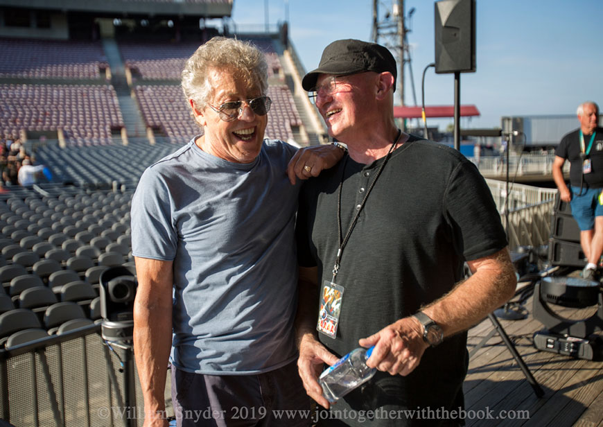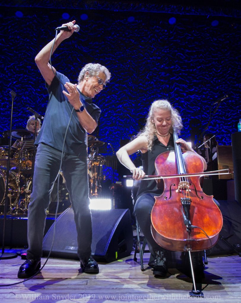 Before the show itself, things are groovy, man. We had a good soundcheck, and the orchestral rehearsal was minimal – as many of these players are friends of conductor Keith Levenson and have done recent shows on this tour. We’re particularly happy to see one of the violinists – Nicole Trotta – who was with us back in the VERY start of our Florida rehearsals. She worked with Keith organizing the music as the tour was being born, and also recently played both Madison Square Garden shows. Pete and Roger are slated do a photoshoot for Rolling Stone magazine here, and are comfortable and casual. There are even Who cookies in catering!