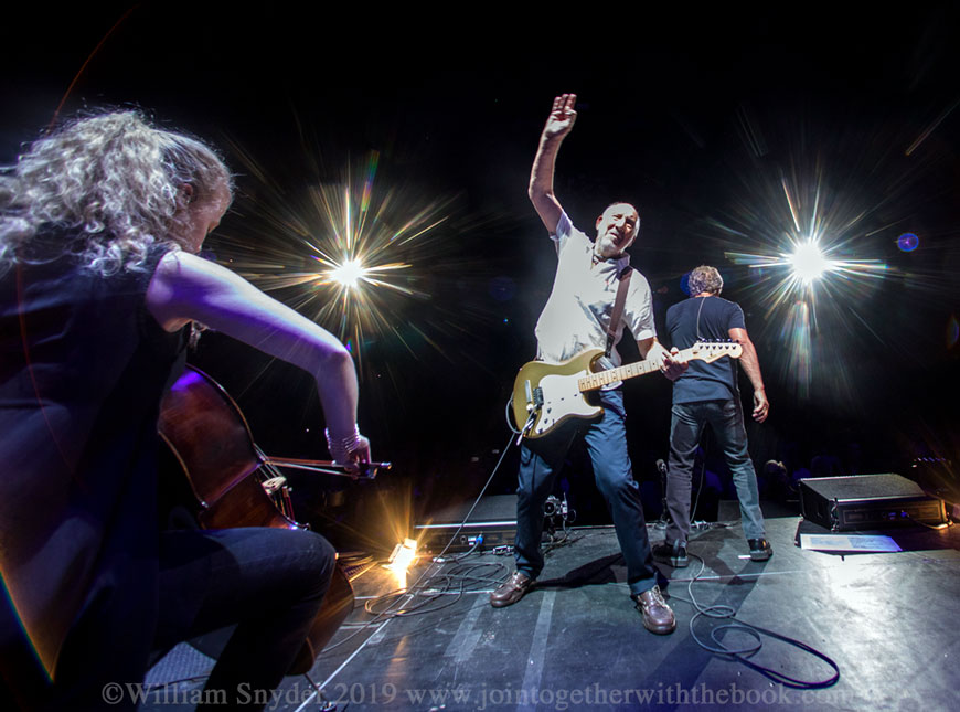 As mentioned now and then, Pete says the orchestral members are incredible; any one of them is “50 times” the musician he is. After he says this, some of the audience boo. They enjoy what he does, no doubt, but technically he is right; they can sight-read nearly anything, have developed technique and control that almost no rock guitarist has ever had (well, very, very few!!) Pete is a very perceptive guy, and he knows the difference. (Likely the orchestra members don’t write classic songs or lyrics everyone on the planet knows, so there!) He also notes they are due a Union break at the moment, so then they will “go out and get drunk and NOT be as good!”