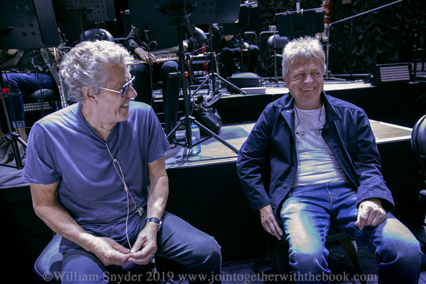 Yet today even started strange – without a doubt, the looooongest soundcheck/rehearsal I can remember. Someone had a premonition and warned our talented VIP-group handlers to have their people ready – just in case The Who wandered in early and wanted to make noise onstage. This is exactly what happened, as our scheduled run-though (with the band only) started maybe 15 minutes early, well before the supposed 4:30pm start. The VIP group came in quickly, just in time to catch the first notes of an early-start rehearsal. We schedule a window of 30 minutes to get things ready with the group even before the orchestra come in. And, given that we have another 30 minutes with the orchestra coming up, the band doesn’t want to do most of an hour of playing/singing before the main event…