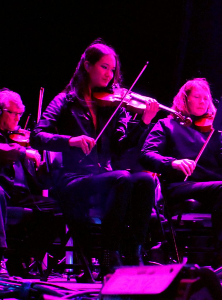 Katie Jacoby joined us for Roger’s tour of Tommy; there she handled the sheet music and orchestral setup, but was only performing on the ‘Baba O’Riley’ solo at the end. She’s a monster talent, with classical training and improvisational skills (plus wicked on electronics and hard-rock shredding when needed!) She is now concertmaster (leader of the orchestra) as well as helping us organize the score pages for everyone. Her own ensemble is The Showdown Kids in NYC, playing stunning gypsy-jazz (familiar to those who know Django Reinhardt and Stephane Grappelli tradition) and familiar modern covers in that style. Her favorite parts of the set are ‘Baba O’Riley’ (of course) and the new ‘Eminence Front’ arrangement. Specifically, she thinks the orchestral versions explore the majestic parts of Tommy and especially Quadrophenia – the direction hinted in the original parts and layers. ‘The Rock’ has Tchaikovsky written all over it!” She also has a record coming out under her own name that explores a lot of options available to her violin skills – look on YouTube (besides the hundreds of recent videos of ‘Baba’!) for some great examples.