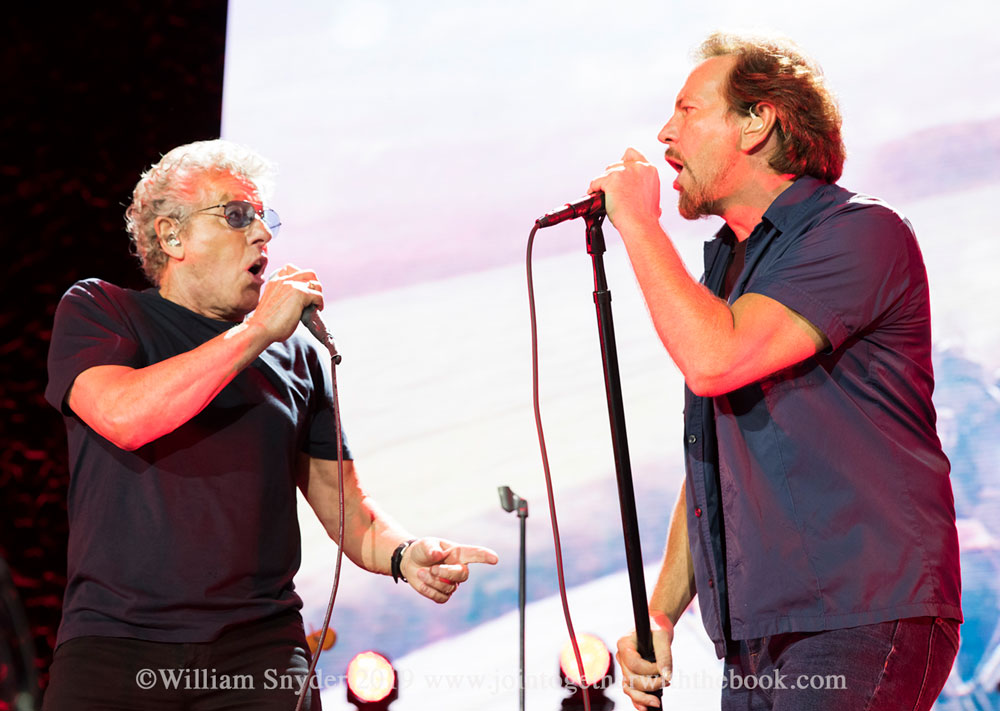 The break to the band-only set let the orchestra leave the stage (a require union break anyway) and the basic format show brought the audience even more into the fold. ‘Substitute’ was followed by ‘The Seeker’ and both clearly satisfied everyone. A quick detour into the acoustic duo, as Roger and Pete started ‘Won’t Get Fooled Again’ with just the one guitar. I thought Pete was improvising something new as Roger began to sing over the new chords, then the song suddenly stopped: Pete explained he was still playing ‘The Seeker’ (by accident) and they restarted to many laughs all around. I think there were three full re-starts during tonights show – a big difference is The Who do not mind any of that, as long as the presentation is eventually right, a small mistake is easily forgotten, sometimes even a bonus! Somehow, seeing them connect so well with the audience here – it really was a strong moment that truly won over the last of the audience holdouts – I realized that smaller production may actually break down the divide between performer and audience. Eddie Vedder’s set was full of this, our own smaller performances connected the best, as well.