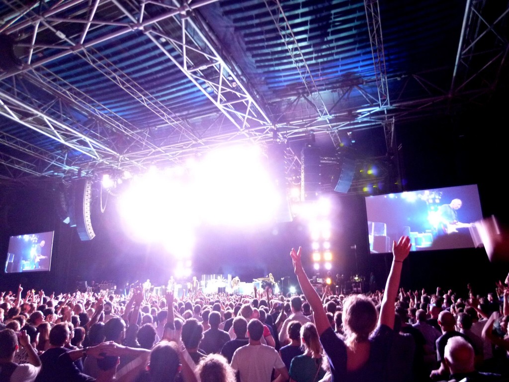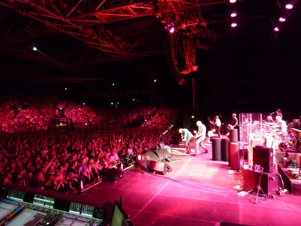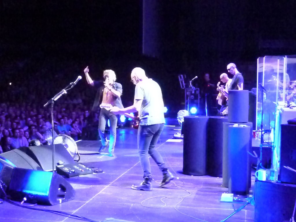 WOW – despite the heat (long before the show started) the band tonight were terrific. Again, not flawless, but a 99.5% amazing show. The crowd went crazy, the band played well, with many inspired moments from everyone. Beautiful piano intro to ‘Love Reign O’er Me’ from John, great feedback moments from Pete, powerful held notes from Roger. Everyone was firing on all cylinders, and soaking their clothes in sweat as they did. It’s a truism that instruments don’t vibrate well in cold weather, especially guitars and drums, but also speakers and so on. Tonight, cold was never a possibility, and the opposite happened – everything vibrated loosely and freely, with great tones from the bass, drums, guitars and voices.