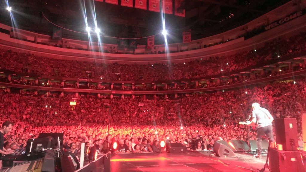 We’ve played here several times before, it basically replaced the famous Spectrum arena that was here during the 70s/80s era. It’s a BIG building, oddly enough with two stadiums right across the street for outdoor sports. From the stage the view of this cavernous room is incredible. It has steep high sides, so it looks like a wall of people surrounding you. Most arenas are not really that different, as they are built for hockey and/or basketball, but this one is visually enormous. The Who plays arenas, but few are this size – about 20,000 seats- with a few exceptions (The Hollywood Bowl in Los Angeles seats about 18,000, Madison Square Garden in New York is 18,000).