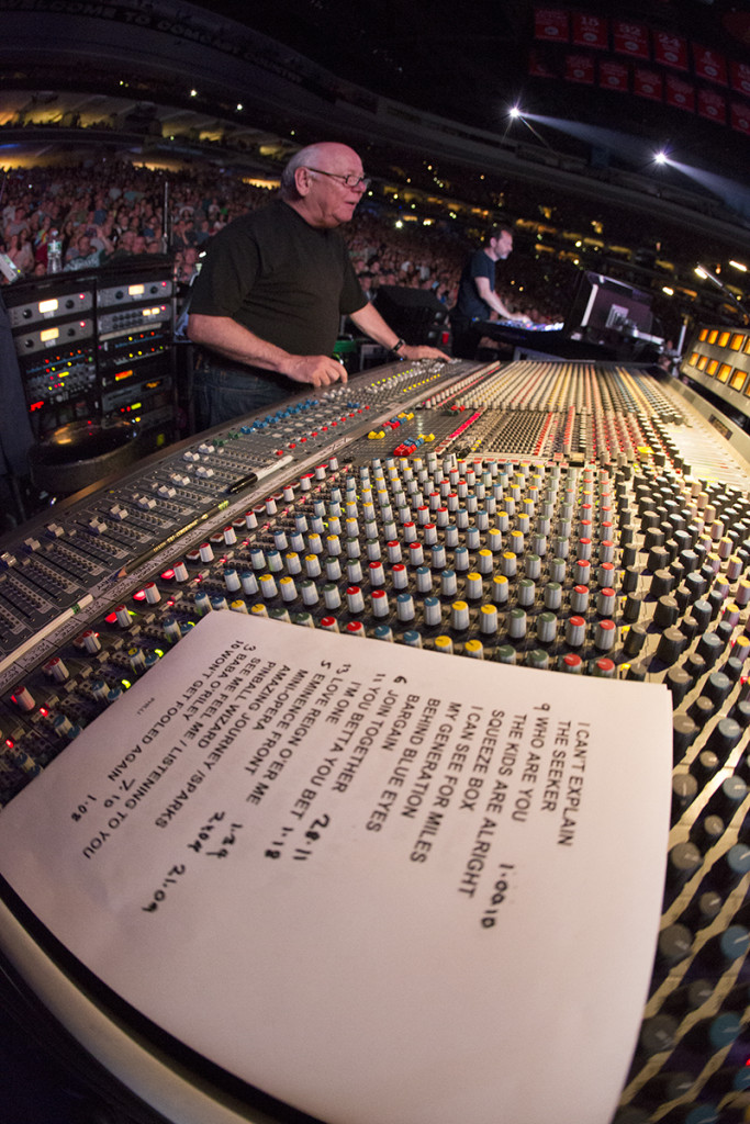 Some great photos tonight: an old friend of ours, William Snyder, is a brilliant photographer. He gets strong and unusual shots, showing you the things you don’t normally see: most others shoot only Roger and Pete from the front onstage (it’s a classic look but is seen so many places). His photos are artsy at times, realistic at others, and show sides of the band you don’t normally see. Thanks, William. He’ll be out with us for several shows upcoming.