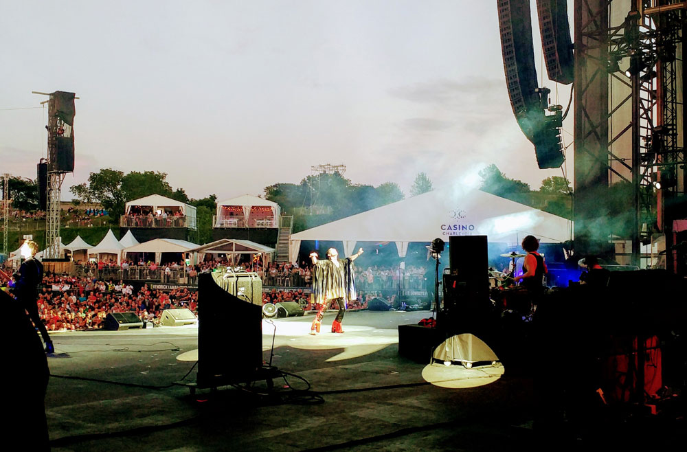 While we’ re setting up in the morning sun, something happened we’ve never seen anywhere; a tour bus, full of waving riders, drives past the stage. We’ re part of the City of Quebec tour now, I guess… Things go well, it seems, and we simply check that all the instruments and channels work – then we “push back” and roll all the platforms and risers back off the main stage. We don’t have to undo everything, most of it stays attached and ready to roll back after our opening bands play. However, due to the early nature of the setup and the challenges of testing sound in an empty space, we don’t do a soundcheck with the band. They trust us to know what is needed. Don’ t forget; The Who never used to soundcheck for ages anyway; they preferred to just show up and rock every night.