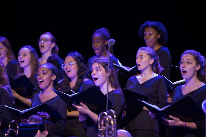 The aptly-named Chicagoland Pops Orchestra was our symphonic team for the night, as conducted by Robert Ziegler. One big surprise, and also a good one; the choir tonight was quite young. Generally in the 15-year-old range, they are called the Chicago Children’s Choir. They – and their conductor – treated us to some amazing dinnertime moments, as they were just down the hall practicing. I have a little video (above) of the closing moments of ‘Love Reign O’er Me’ rehearsal so you can hear the brilliant layers that are not easily heard during a full orchestral version. Not really children, these young adults brought a massive group of smiles and rhythmic rocking-out onstage during the show. Plus – their singing is stunning.