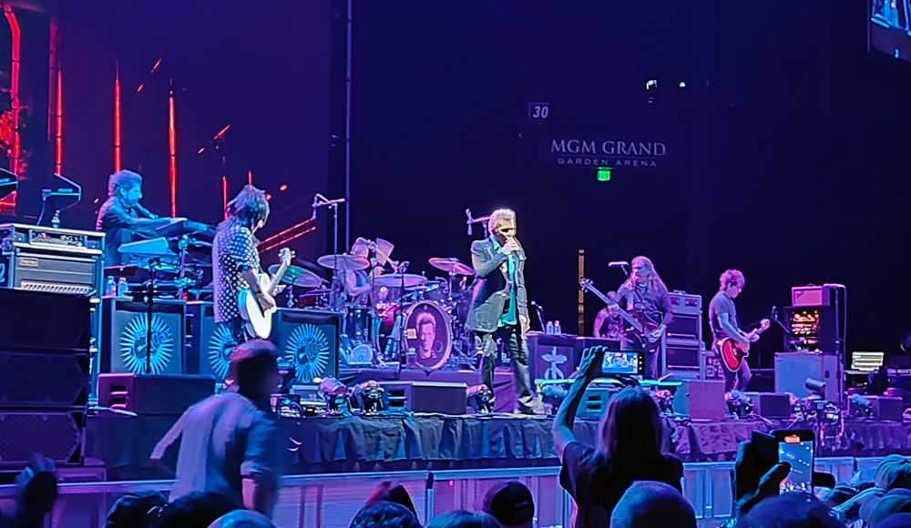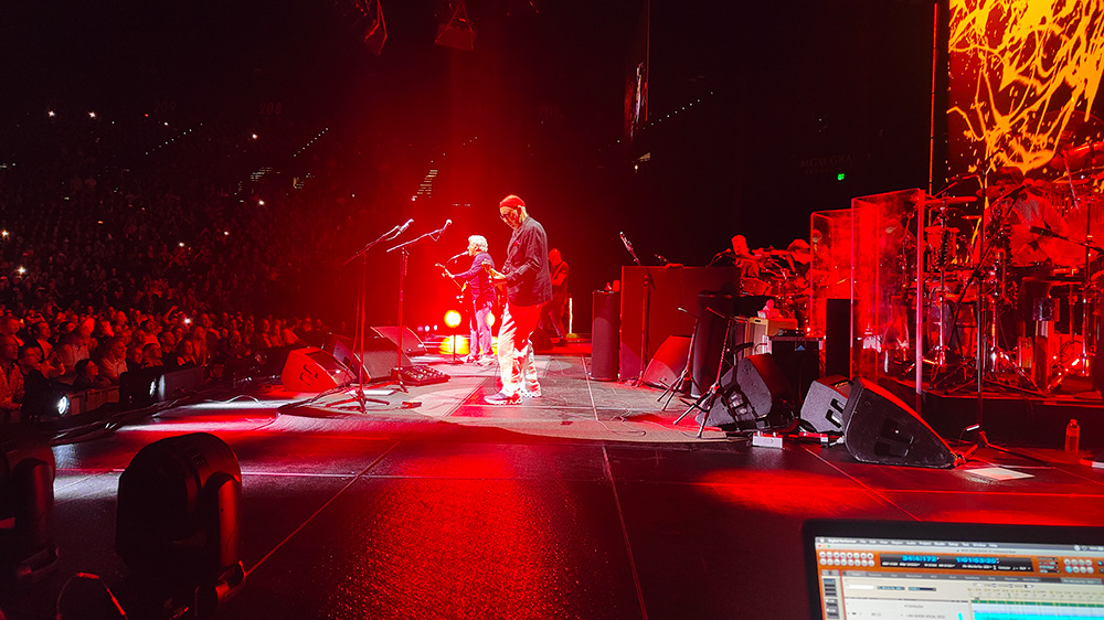 I myself went over to our old stomping ground, Caesars Palace, where Rod Stewart was doing his big show. So different to ours – it’s not a rock concert as much as a venue show, like Broadway or Vegas, with lots of flashing lights and dancing onstage and video, huge amounts of video content. But that’s for a general audience, I think. People that don’t know more than the hits (he has a lot) they are just visitors to Vegas for a big night out – that’s what Caesars tends to book in there. Ours – very stripped down and almost a club show in comparison.