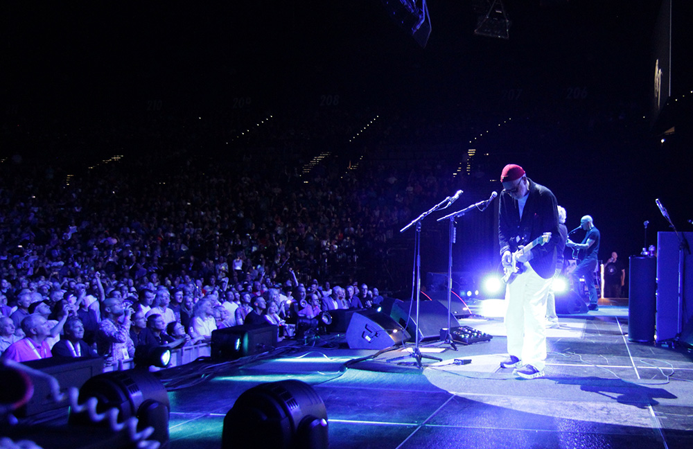 Billy Idol – now that is an opening act! He’s popular with almost anyone who lived through the ’80s and he has a long connection with The Who for sure. As the bellboy in live Quadrophenia, the 1980 Tommy video/LP at Universal Amphitheater, and some vocal songs on Rachel and Pete’s Classic Quadrophenia run. He’s a lovely guy – very sweet and quiet actually – but their show is perfect: There are lots of hit songs you know, and a set full of rockers you may not. The band is incredible as are the visuals and sound. He’s a touring headliner; this is his last show after his own popular tour, so this was a strong night for the fans. They were definitely enjoying it like most opening acts never get – and I don’t think I’ve seen our own crew enjoy an opening act as much. Go check out Billy – he’s still great!