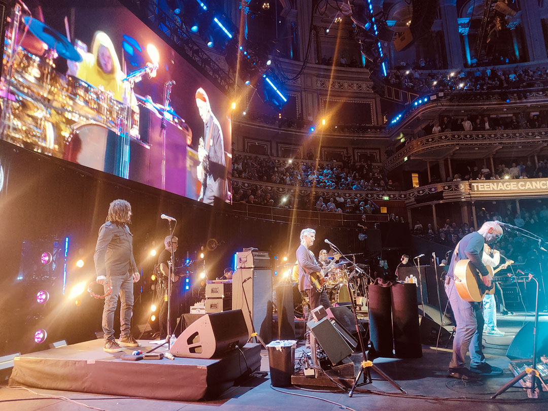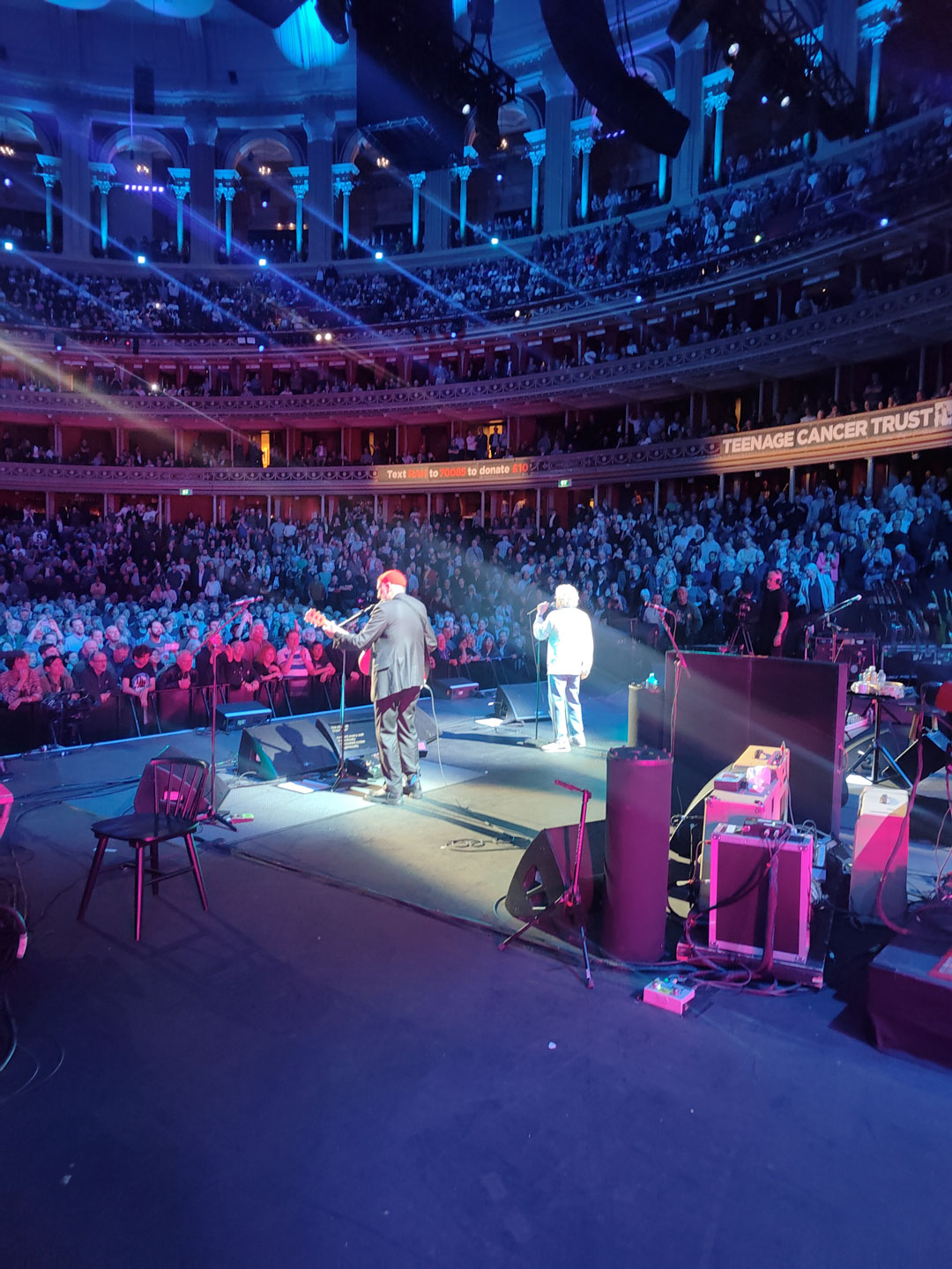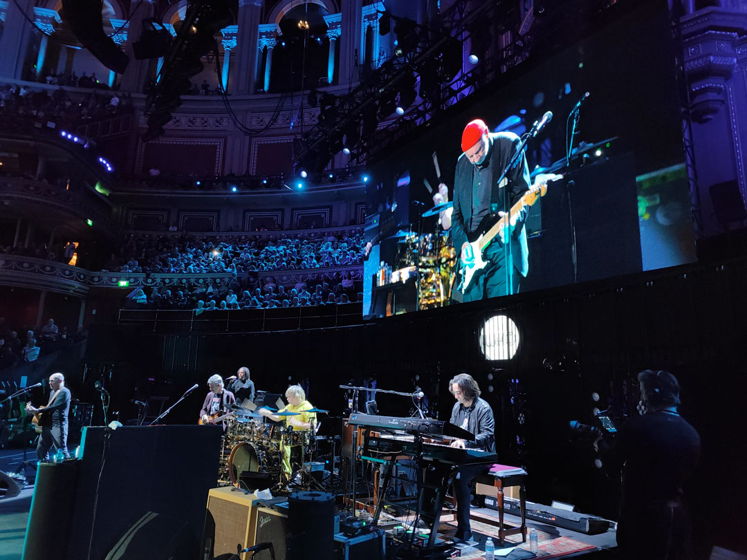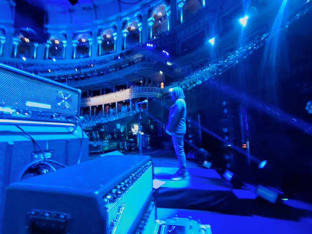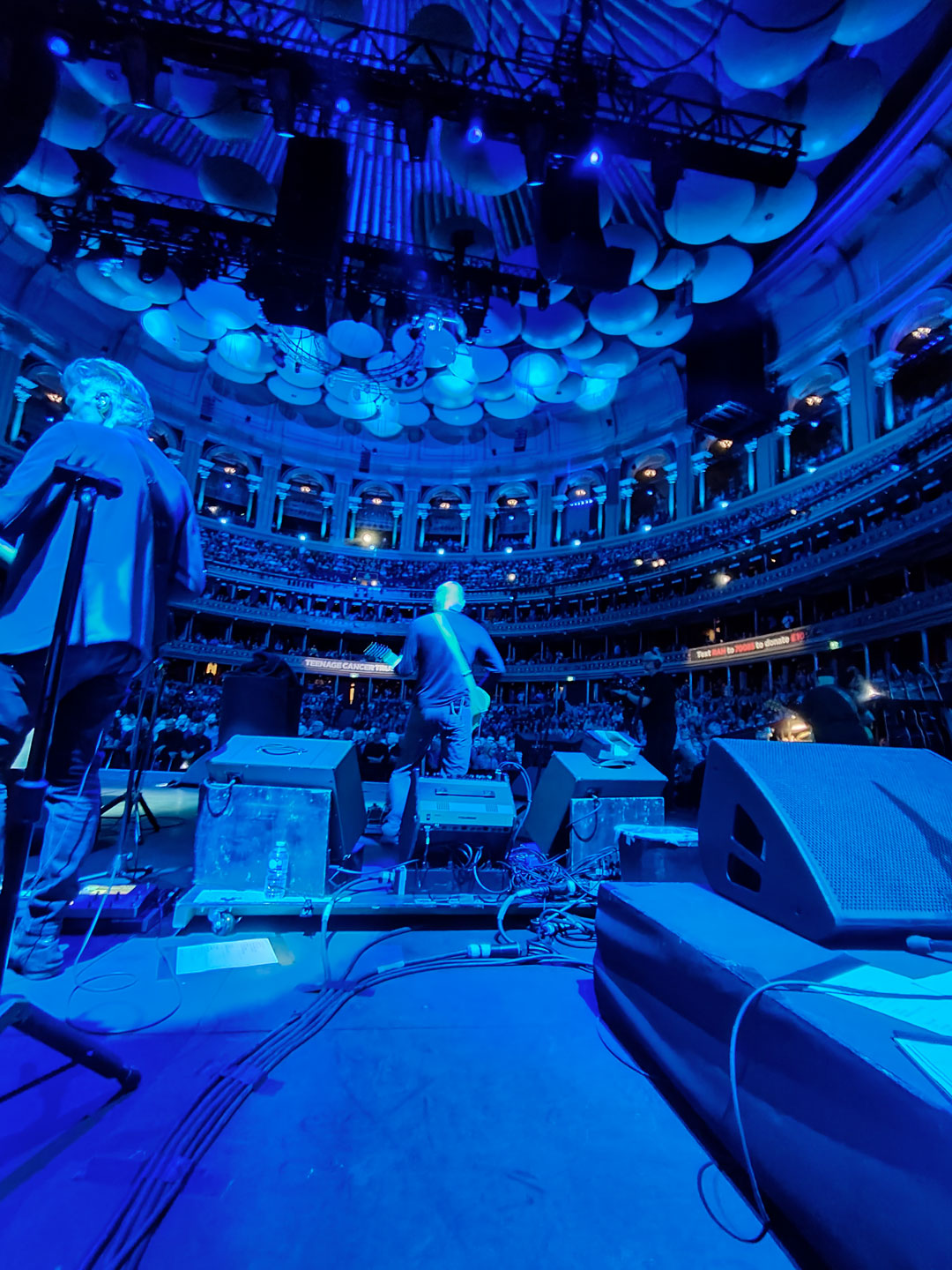 And so it is tonight, people from all over the world coming to the old Royal Albert Hall. This is a revered venue for historical reasons and for beauty, but once in here, we realize it’s also a great-sounding room. It’s much superior to the rectangular concrete box we were in for rehearsals. The drums don’t sound harsh, the guitars and vocals have a soft haze around them, rather than a hard echo. The crew have done their usual setup, simultaneously marveling at the amount of space we have without an orchestra, but also that we ever made this AND an orchestra fit into the same stage.