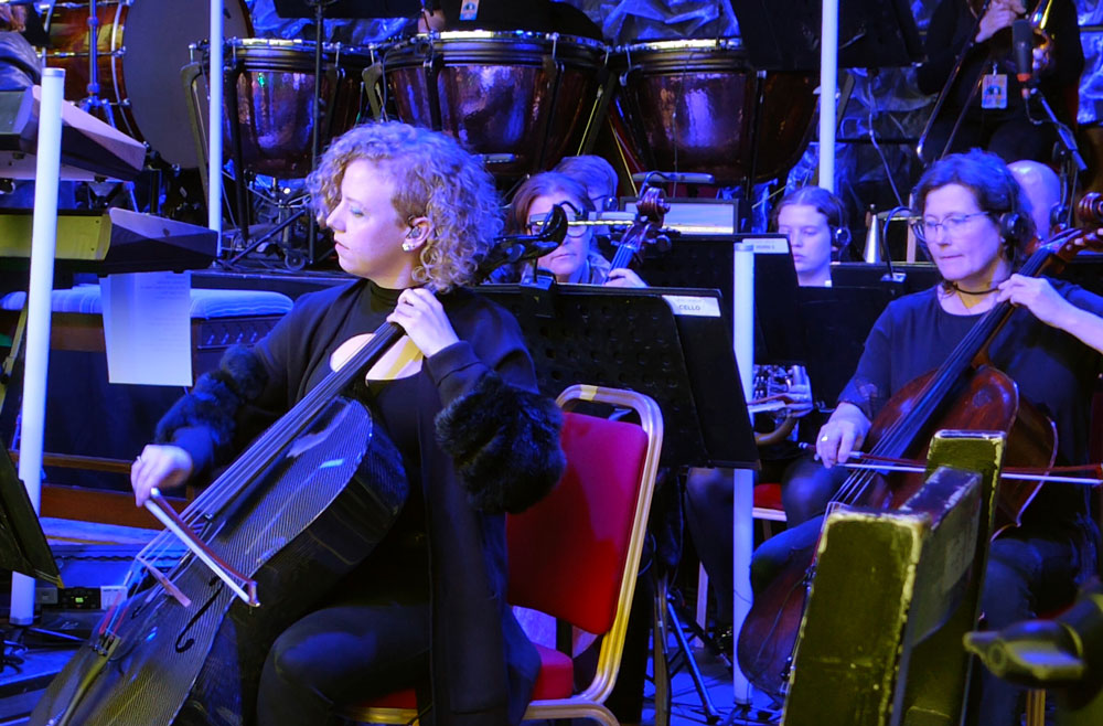 This stage is quite small – as big as they can make it, given the space – but we are barely able to get in. All our side-stage operations (guitar techs, sound crew) are packed in, and our orchestra are elbow-to-elbow. The riser stage we use for horns/brass won’t fit at all, so we have them flat on the floor, and a few of the French horns have to sit behind the keyboard rig. Not ideal, but they are good sports about it – there is no other way.