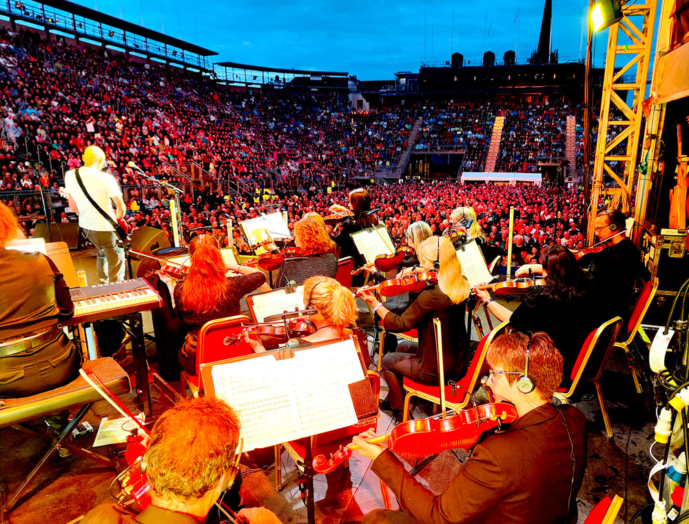 Today is different, quite different for us: since our orchestra is traveling with us, they don’t need a rehearsal! Fantastic. That saves us hours of time today, and they will be in just after the band check to join us for the full group rehearsal of one or two songs, then we’re set to go. The arena fills up quickly and somehow they manage to squeeze in thousands of people up the one street in an hour or so. Fascinating.