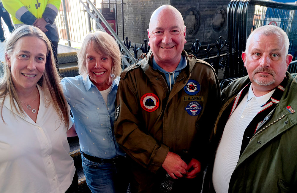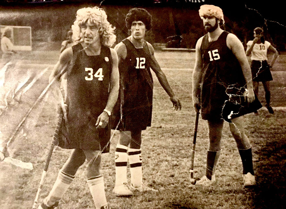 Both Rog and Pete were generous with their time and very chatty with them, as Cath and Judy are very likeable folks. They’d asked Roger about a photo they’d found in a newspaper, which I can post here. It made Rog laugh out loud! It was in Florida, circa 1980. They found themselves in the middle of a dozen field-hockey teams, all female! So some of the band and crew borrowed some of the girls’ uniforms, Roger ordered wigs brought in, and they played against one of the girls teams; “They smashed us!” says co-manager Bill Curbishley! In the photos we can spot Kenney Jones, Rog, John The Ox, Mick Double, Doug Clarke (you met him in the last blog, and he sent me another of the photos from that day) and Glyn Johns even.