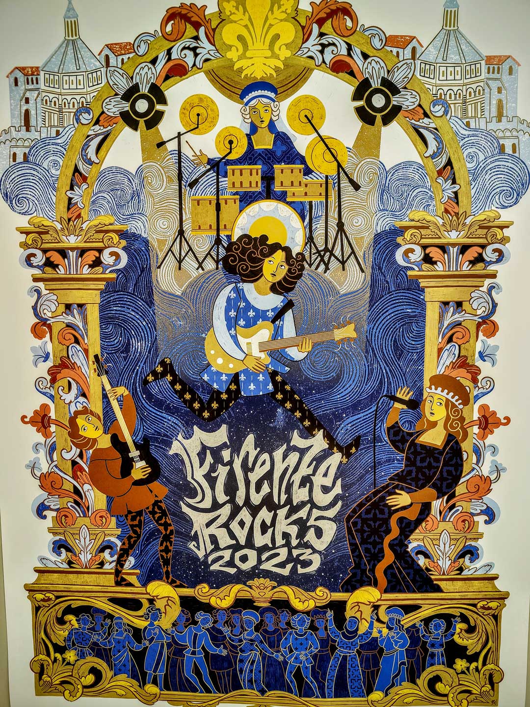 Firenze Rocks Festival – yeah, they say things in English all over the world, like “rocks” as it’s become the default universal language. Even all over town, no doubt because of the tourists, many of the signs are in plain English – “Ladies Shoes On Sale Today!” But “Firenze” – it’s one of those things I learned traveling years ago; many cities have a true local name and an “English translation name”. Why, I don’t know, because Berlin is Berlin, Toronto is Toronto, New York is New York. But Firenze to the locals is Florence, Italy as we outsiders know it. In Germany, München is what the locals call our Munich. Koln is what the locals say, we say Cologne, Germany. Cairo has many different names in Egypt. It’s a proper name, so I never understand why it needs a translation, and others don’t. Regardless, we now agree that Firenze does indeed rock, and you’ll see why . . .