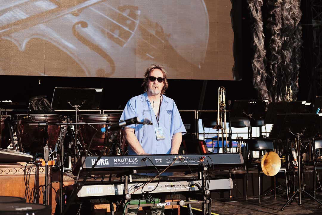 During ‘The Rock’ the usual film ran showing various world events. It works well here, as we’re doing an instrumental, and even Pete’s fingers are busy – not as much to see in stage movement. So the film is not a political commentary, but it does capture events of all kinds (good and bad) for us to consider our recent history, starting around the time of the band’s formation to the present. For the first time, I notice it’s been updated to include the death of HM The Queen and the coronation of the new King. A slight change, but very current, and reminds us we’re still in the long, ongoing stream of things. Pete’s clearly enjoying ‘The Rock’ this time, it looks and sounds great. He claps twice during the Russian dance section, and the audience follows; it looks a lot like ‘Radio Gaga’ did for Queen at Live Aid, just massive. Then a huge finish with a blast of strings and horns and percussion.