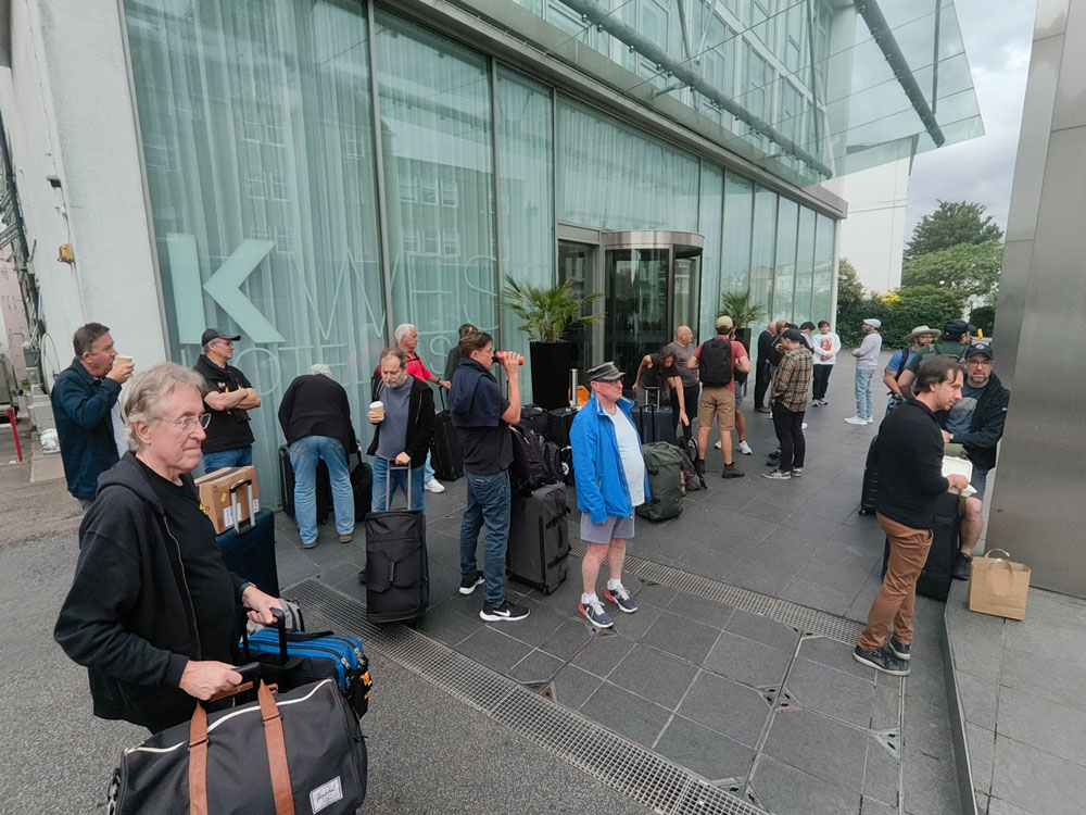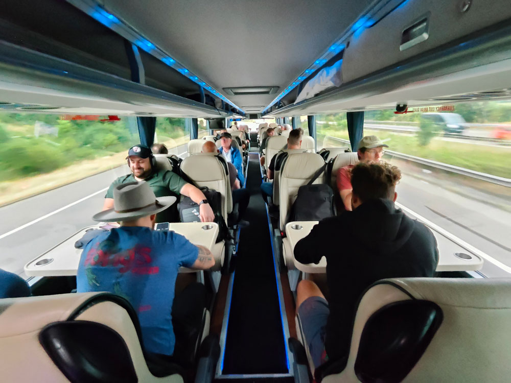 This is a view on the crew’s “day bus” – not the usual kind that we could sleep in, but when we’re only traveling shorter distances (city to city), we take these buses. Here we are, back in England, home territory again. We move from hotel to hotel on this tour, as we have a few days between shows, and no need for long overnight drives when in the UK.