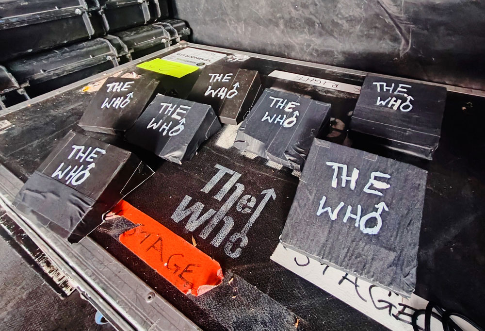 I often notice the band is pretty good about not asking for changes to their monitors during the show – once in a while, yes. But that job, run for many years by Simon Higgs, is possibly one of the most demanding on a tour. It’s how the band hears their own music. Each musician has a sound, a mix, that they hear of themselves and others. No two are the same. Usually each player has themselves unusually loud, so they can clearly hear their own part above the rest. There may even be things they don’t want to hear, that may confuse them or affect their timing, so they have that turned down. And even the roadies have mixes (sometimes) so they can hear what their musician is doing, if the amp has a noise or crackle, if there are any issues. When I started back in the early 2000s, we used to have everything onstage, and pretty loud. Drums, bass, guitar amps, even Roger’s and others vocals booming onstage so each part could be heard. For us, on the backstage team, it was easier to hear how the show is going – or even hear the comments to the audience. Today, it’s quite different – the in-ear monitors are hi-tech earbuds that isolate the sounds, so things don’t need to be loud to be heard onstage. Roger can whisper over a loud band part and still hear himself. As I was saying, for the most part, the band have settled in, leaving Simon to do his job adjusting things for Roger moment-by-moment; the other players only need a simple change now and then during a show.