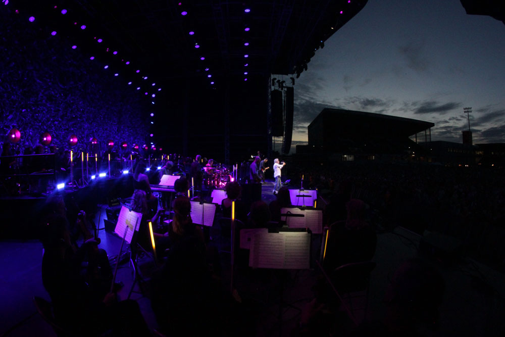Because we’re here with one day off – they have the video and light crews come in a day early, to set up and prep everything. Then today, our show day, the rest load in, more stage and sound setup, plus time for the orchestra to rehearse. I told you in the previous blog that there was a surprise – which we’ve not had before: This orchestra will be ours on tour: They will play every show on this tour leg with us. We are pleased for two significant reasons: One: They’ll likely get better and better each show, being more familiar with the music and our show. Two: If they don’t need to rehearse, it takes about two-and-a-half to three hours less work for us each day. We set up later, test everything later, and still have a great performance. Looking forward to this, it promises to bring some stronger shows.