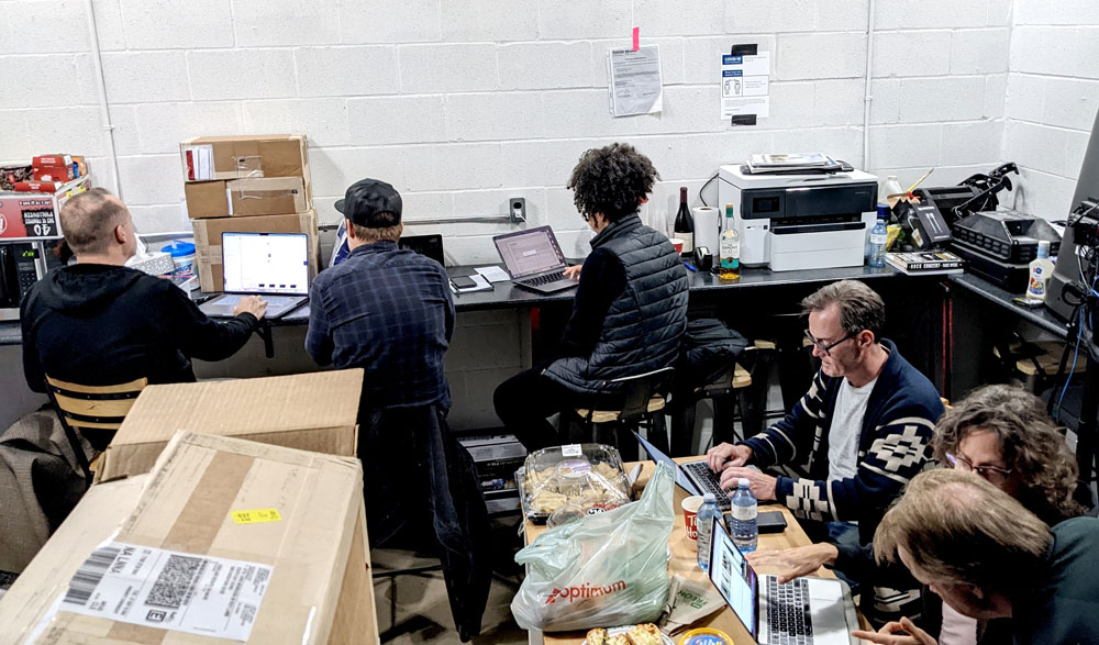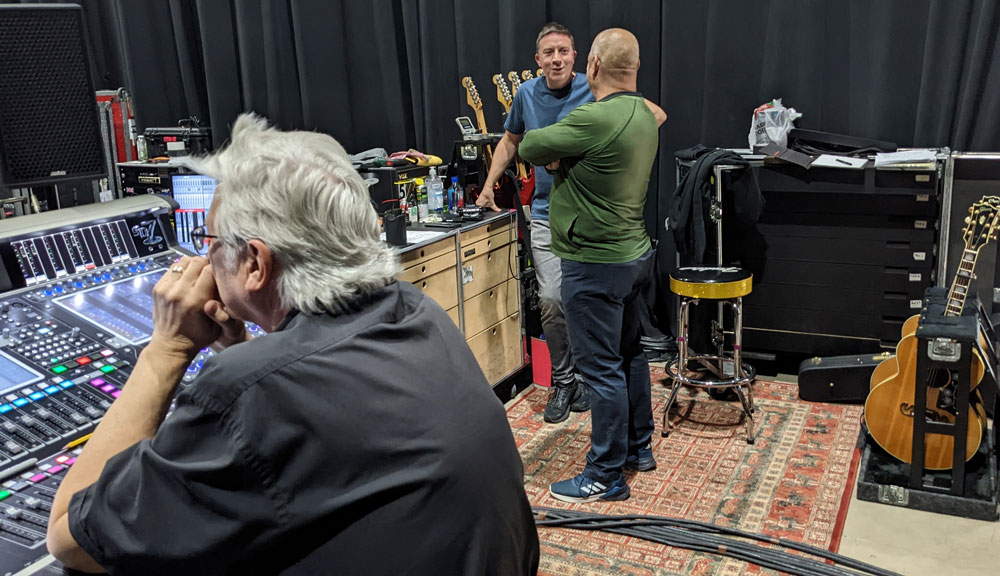 This Who family is just that: We live closer and more intensely than almost any relatives do. We wake together, eat all meals together, and work 12 or more hours that same day. So we know each other well. Probably half our team has been with us over 10 years, some 20-30 etc, and others fairly recent. But all become familiar faces and names by the time you get past Month One even. Indeed, this is the best part – although we all love The Who as a band and employers, if our team wasn’t so strong; this situation could be really tough some days. It’s only natural that when we get back together, we like to stand around talking to catch up – before the hard tour work starts.
