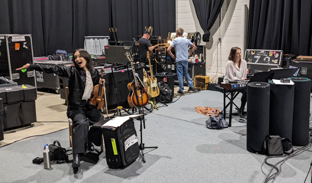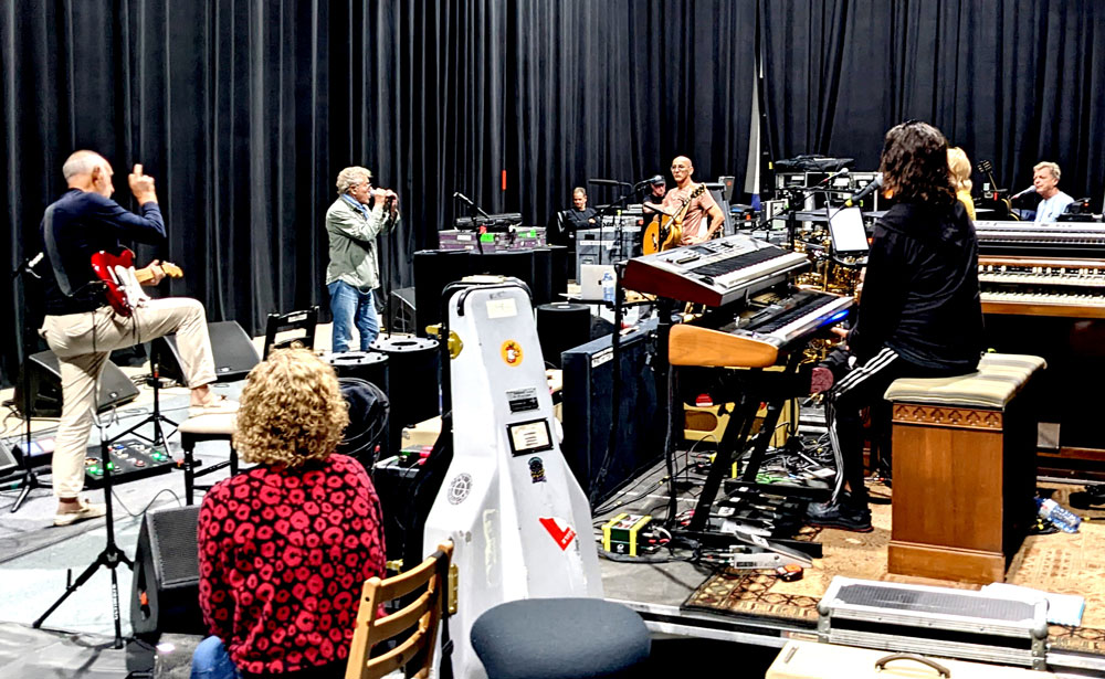 These are always different sessions, with some discussion on what to play – and how to play it. Working through ‘Young Man Blues’, Pete was explaining how he’d gone to see Mose Allison at the Jazz Cafe in central London; Mose told him he’d made far more income from The Who’s cover than he had done from anything else. Makes sense though! And live, the song became such a large platform for The Who to work with. The 2022 band has essentially learned the now-famous Live At Leeds version, but that was just one-night’s-version; Pete doesn’t want to replicate that night, but also realizes they needed to build into some kind of structure that makes sense and could be followed each night today. ‘Naked Eye’ was another song discussed. Pete explained how they’d evolved it from live jams, each member responding to the others and it grew. He mentioned that they’d recorded it at his studio once (I thought it was in NY maybe?) but it became fairly well-known as the best “unreleased” Who song – only coming out much later on Odds and Sods. That old studio Life House out-take of it is much faster, so the feel and impact of it is so much stronger live when they do play it nowadays. After two-three hours of this, time to pack up and load the trucks for the show.