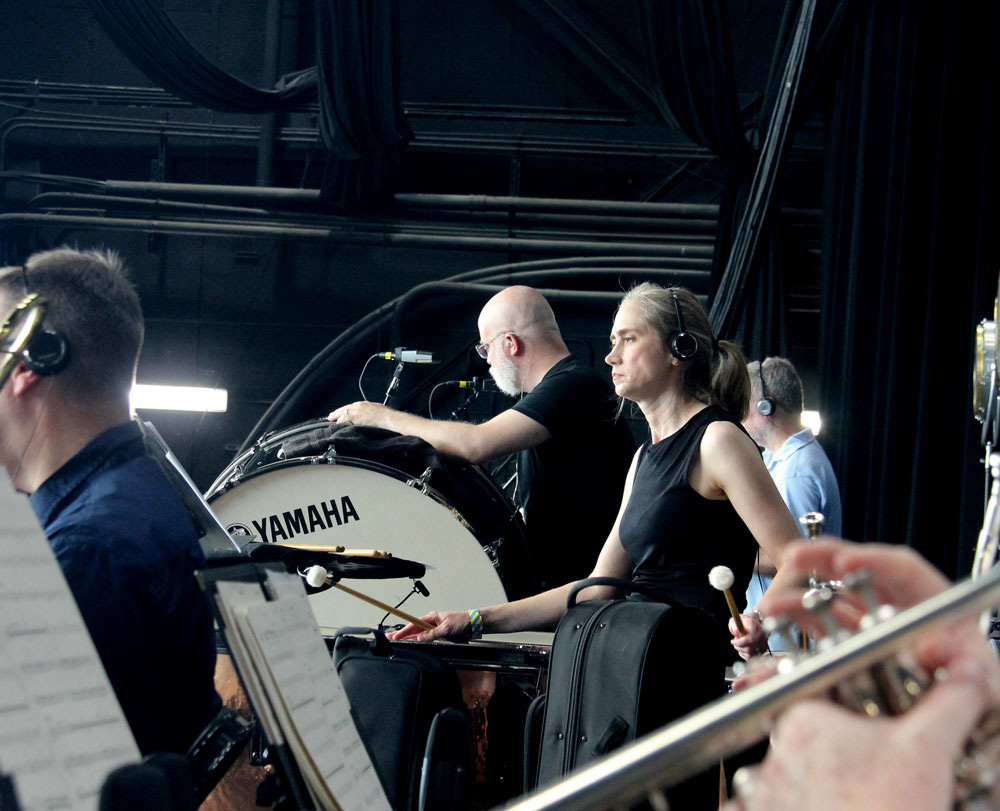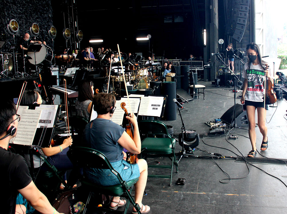 Emily Marshall, our new member of the touring band, runs the orchestra through some of the set for tonight’s show