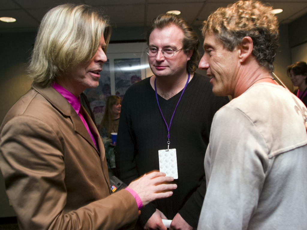 . . . and showed him in his ‘Earthling’ coat, made by Alexander McQueen, but certainly inspired by John and Pete’s Union Jack coat of the ‘60s. Our longtime lighting designer, Tom Kenny, found some great photos for us to use, as well as relating a great story about young Mr Bowie sneaking backstage to give The Who his 1969 LP, which he’d just completed. Great stuff. Somehow, the slide went viral, spreading the news about The Who and Bowie all across the web. Nice to see him so well-received that this slide moved even more people than we’d hoped.