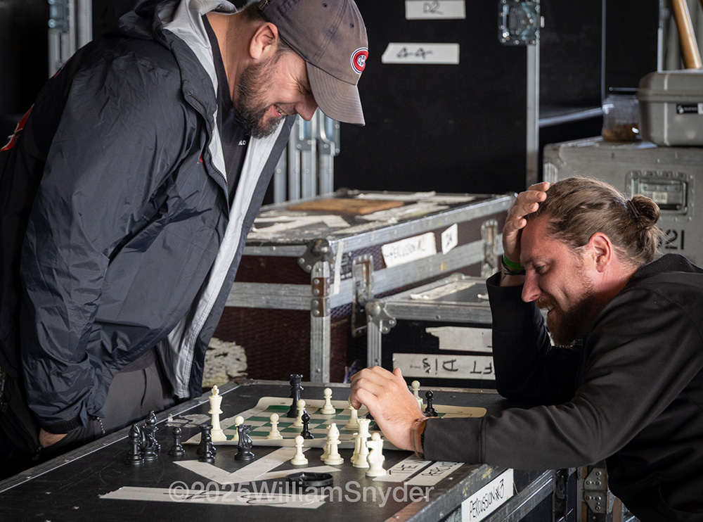 Yes, indeed; even though we had to unload everything from the first show back onto the trucks and move it all away for one day (to make room for another concert here on our ‘day off’), coming back in was such a breeze: The local helpers knew us, even remembered where we put things before, and also when to get out of our hair and let us work. As a result, the fastest load-in setup I can ever recall.