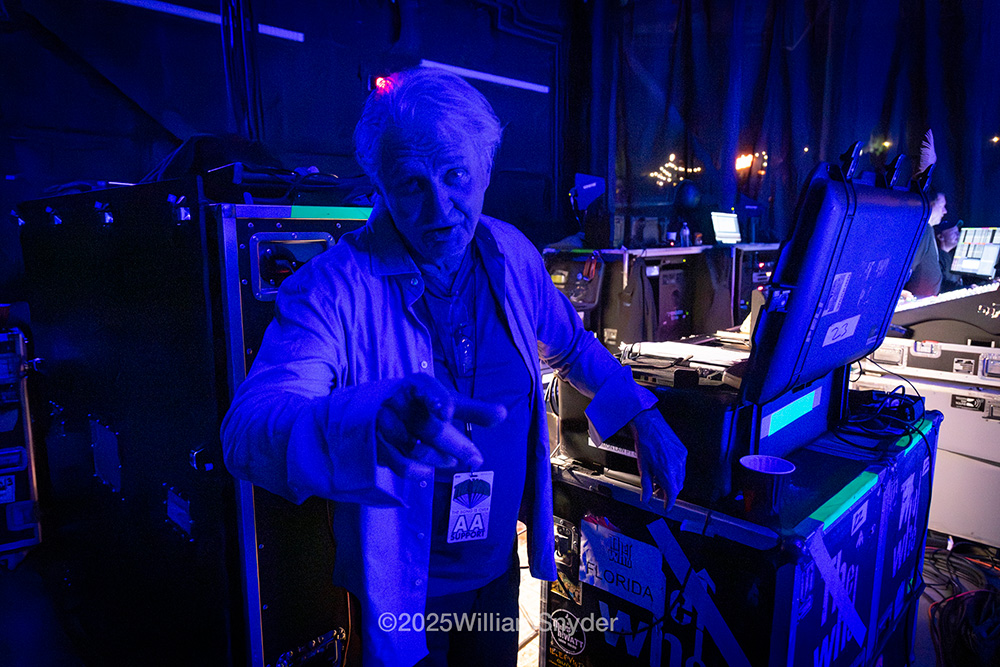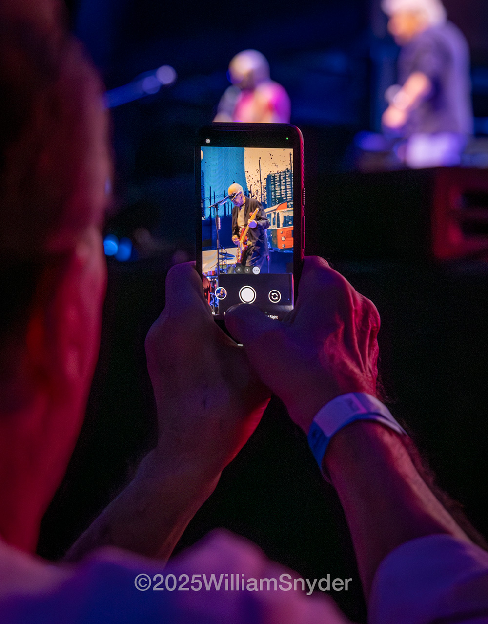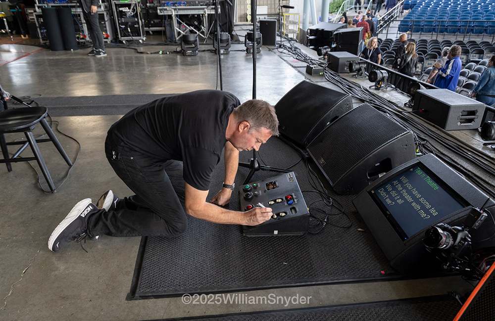 VIP soundcheck happens, the people file in, sitting pretty close up to the stage. But we’re told Roger’s not able to come in. Pete talks on the microphone, admitting this is not what people signed up for. However (and this is pretty cool) he starts our soundcheck just by himself, jamming on electric guitar for about 10 minutes: He’s come in before the band, specifically to work on his guitar sound and settings without any distractions. For most of The Who fans, they would be very pleased to see even a little of this. Pete says that maybe they should give the people half their money back . . . and then jokes “Well, maybe just 45%” (jokingly implying he’s worth just a little bit more to them). The band work on some different songs; ‘Eminence Front’, ‘Going Mobile’ (which has had some rough endings recently), ‘Who Are You’, etc. It’s a good workout and we’re certain Roger will be rested and ready when the time comes.