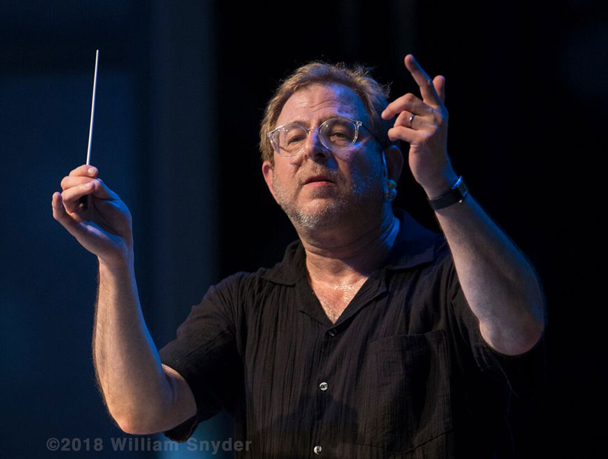 It’s a local orchestra called the New York Pops. They came, practiced with us the day before, after sunset (it’s been blazing hot here for the crew, both on set-up and show-day.) They are a positive bunch. Because the stage is solid concrete (not wood) and the roof is just a very tall tent, it’s not acoustically comparable to the sound of Tanglewood. Only Robert Collins, our man out front, knows how good it sounded through the microphones – might be better or not. But they played very well.