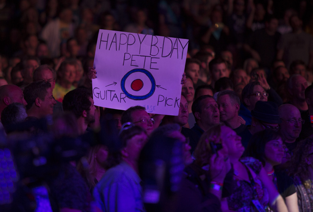 And so, rowdy they were. Long Island, NY; not a shy bunch. Loud and holding signs all around (not something we usually get) with various things. During soundcheck, the VIPs had sung ‘Happy Birthday’ in the distance to Pete, but Roger mentioned that at their age, they don’t always like being reminded! Same for the show, with some songs request and birthday signs also ignored. Probably for various reasons.