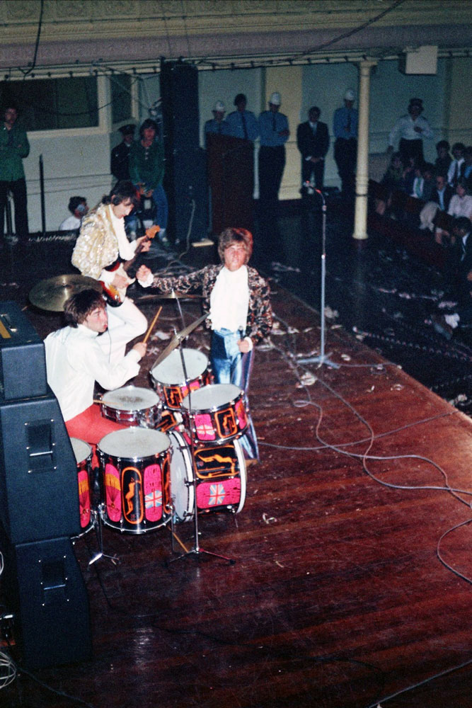 The Who onstage in Wellington, New Zealand at the second show (8:30pm) on January 31, 1968. On the far side of the stage are Bob Pridden and Ronnie Lane. Photo © Rowan Grieg.