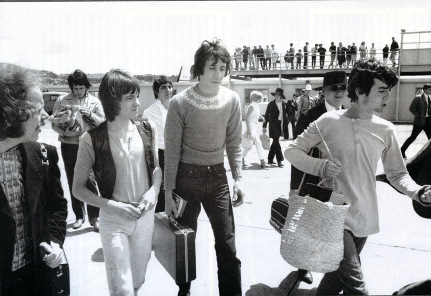 Arriving at Wellington Airport, New Zealand, January 30, 1968 (left to right) Bob Pridden, John Entwistle, Steve Marriott, Keith Moon, Pete Townshend, Roger Daltrey, John Wolff and Ronnie Lane.