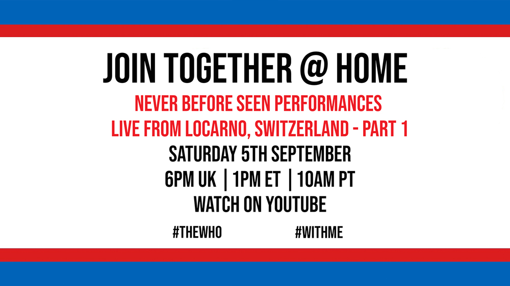 THE WHO UNVEIL A RARE PERFORMANCE FOR DIGITAL PREMIERE FILMED AT LOCARNO, SWITZERLAND AS PART OF THEIR ‘JOIN TOGETHER @ HOME’ SERIES, STREAMING WORLDWIDE EXCLUSIVELY ON YOUTUBE